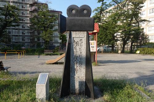 角川大映スタジオ前の 児童公園にある 映画発祥の碑 |